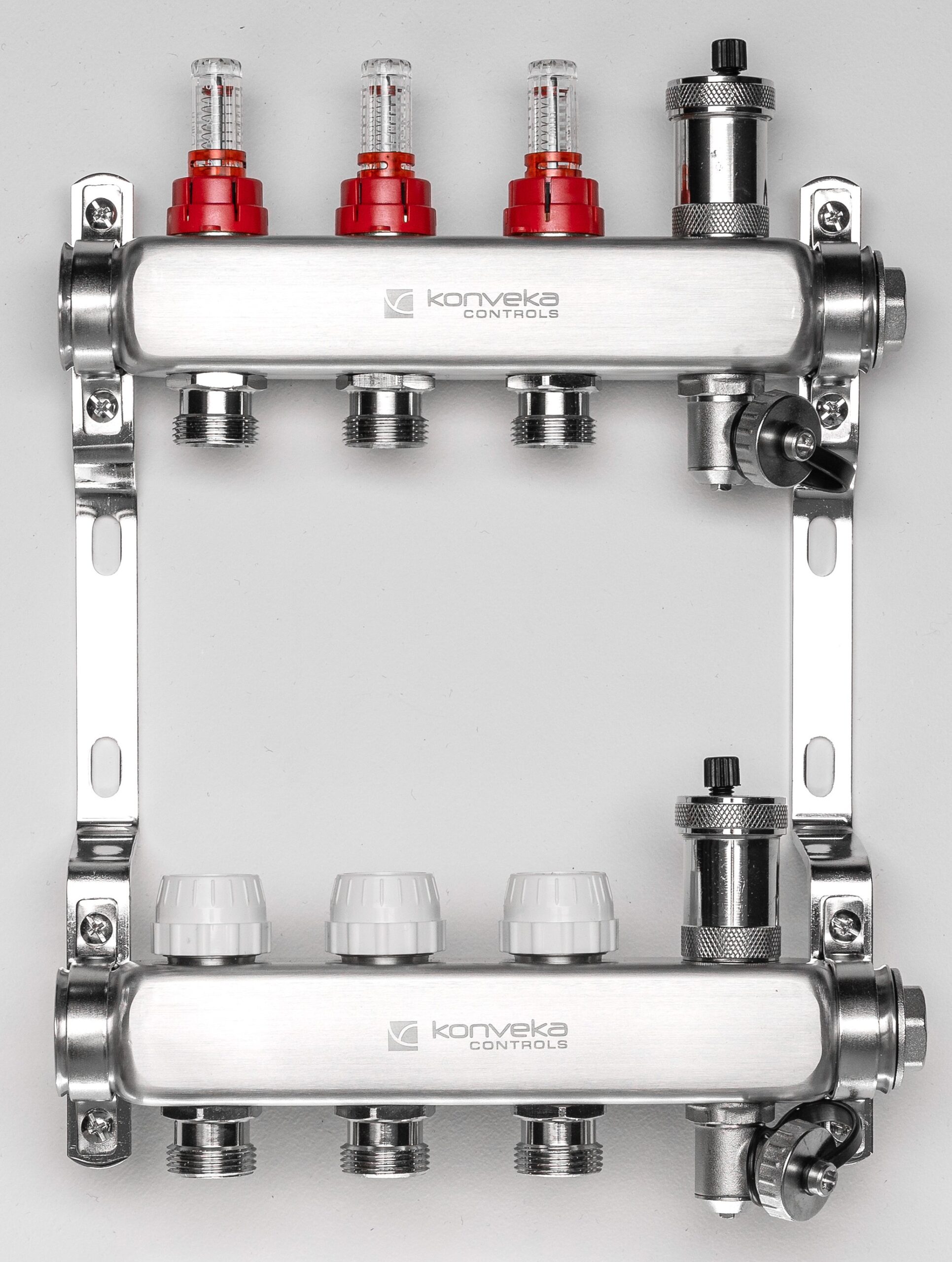 Adjustable 3-circuit manifold with flow meters