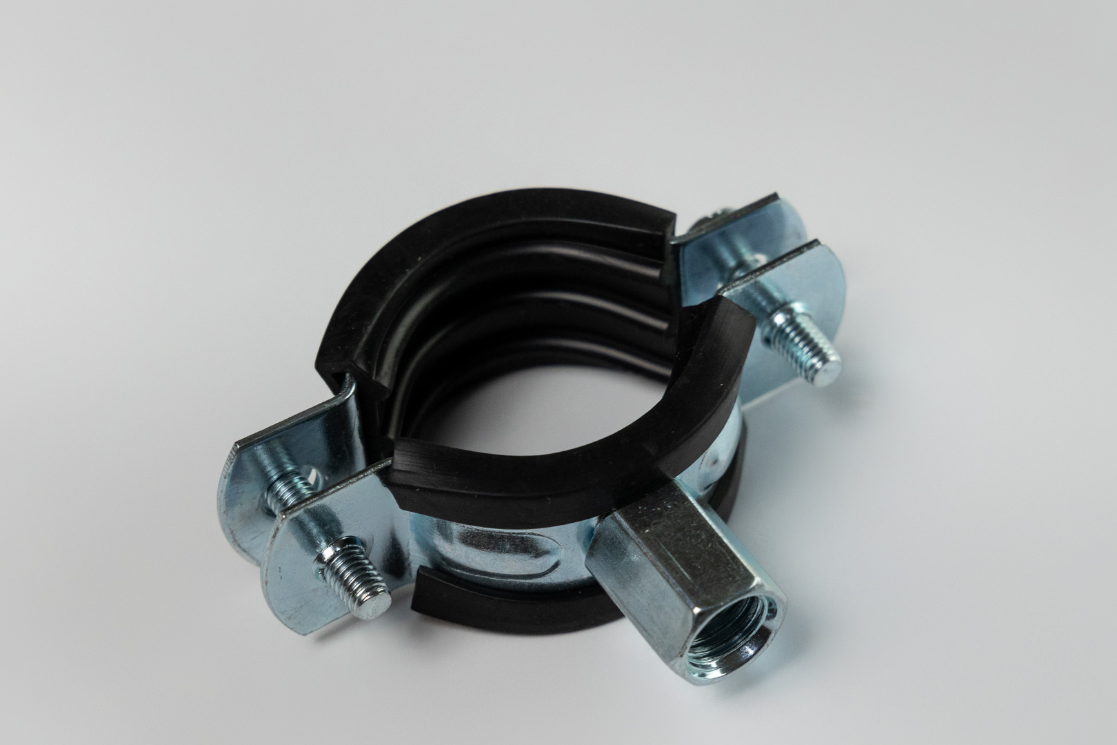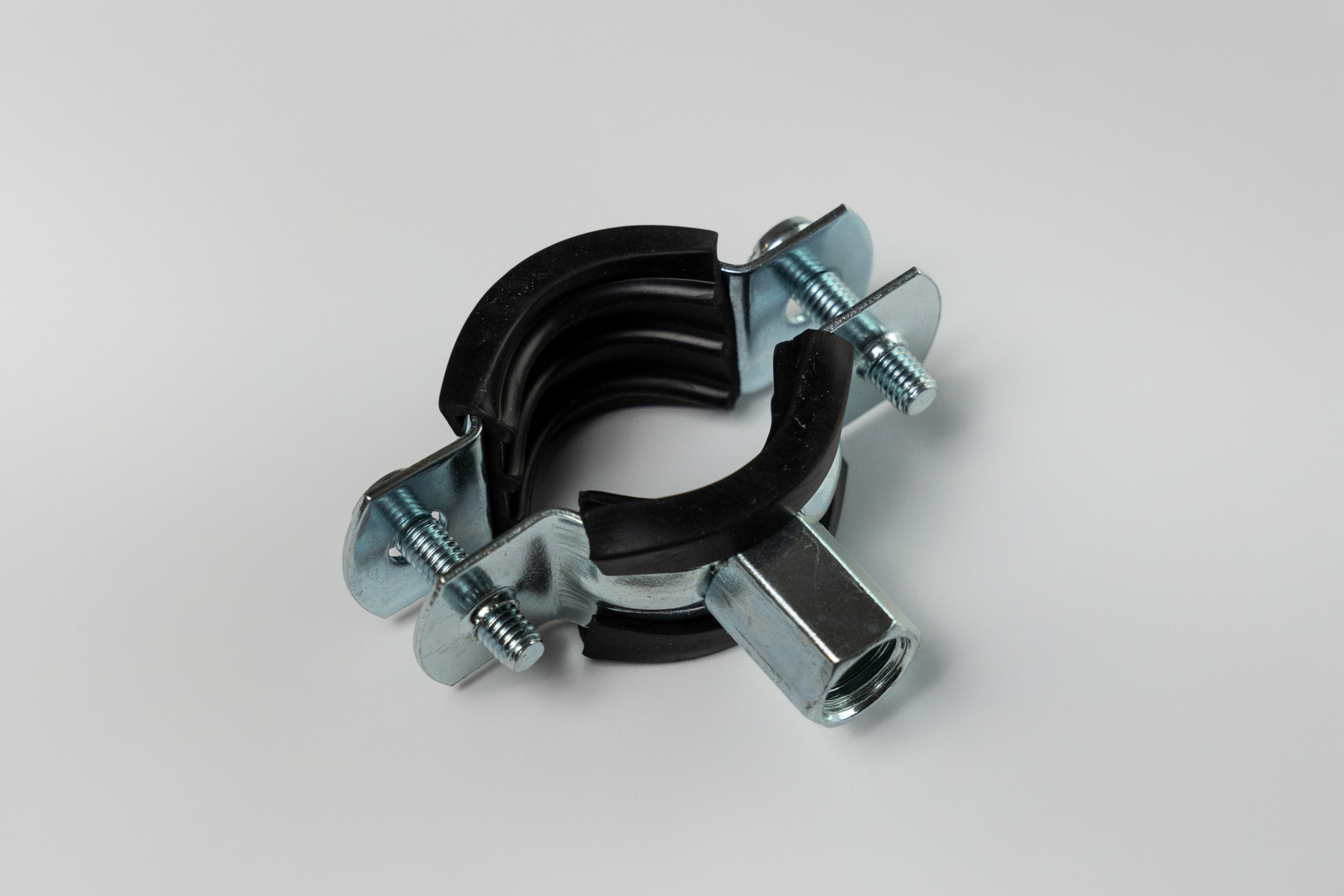 Pipe holders with rubber spacers are designed for fastening all types of round pipes to walls, ceilings, or other surfaces in heating, cooling, and water supply systems. Rubber spacers not only protect the pipe from damage, but also dampen vibrations and noise. Supplied with threaded rods and pins.
