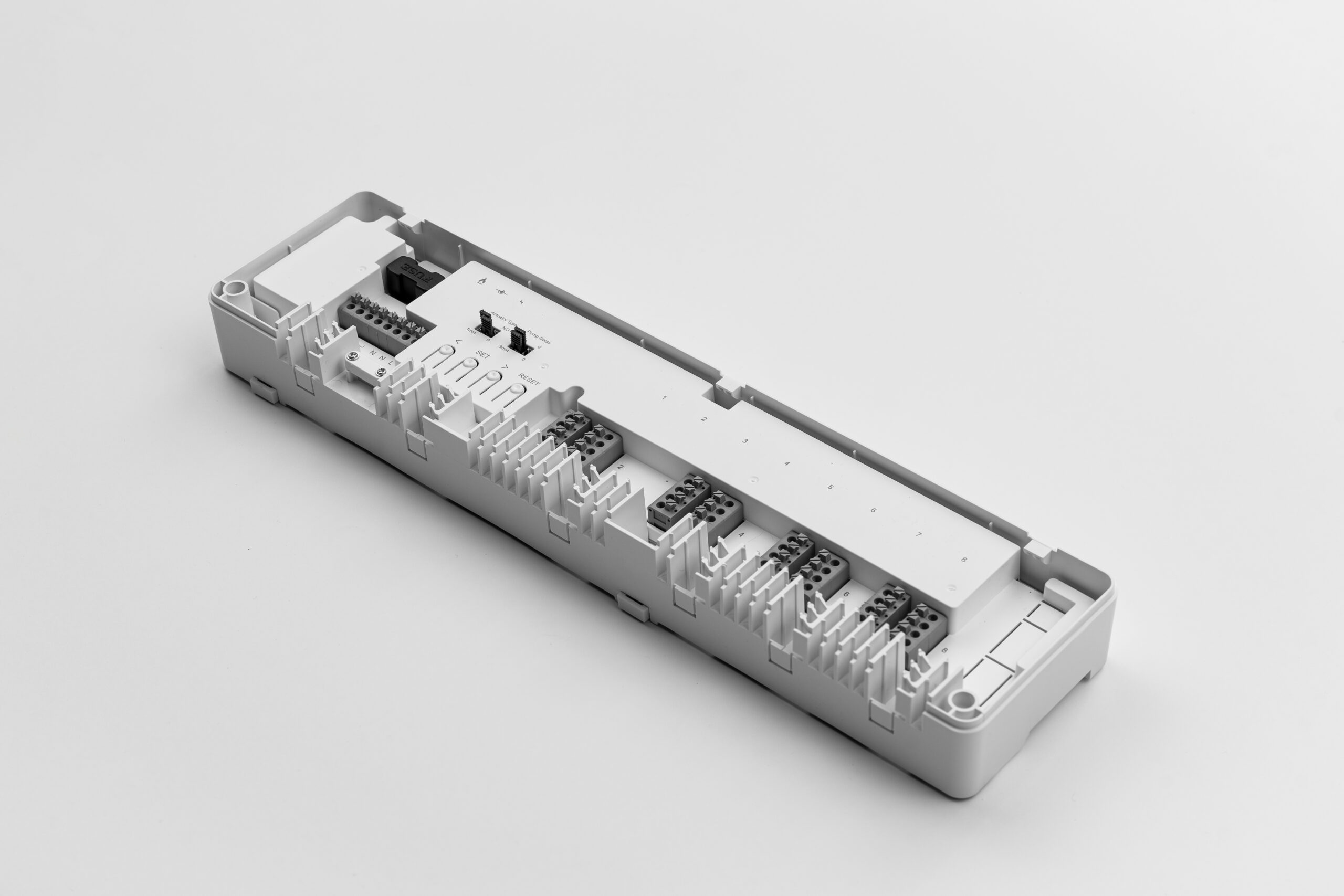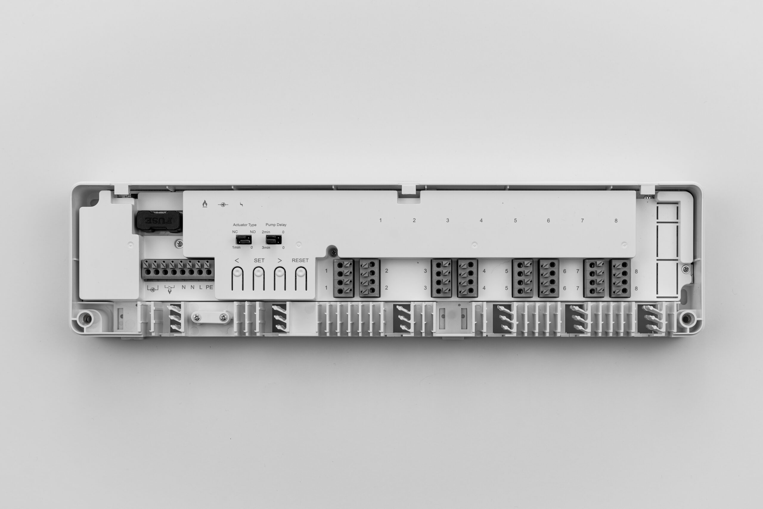 | Maitinimo įtampa: 230V AC, 50/60 Hz | Iki 8 patalpų šildymo ir vėsinimo valdymas |
